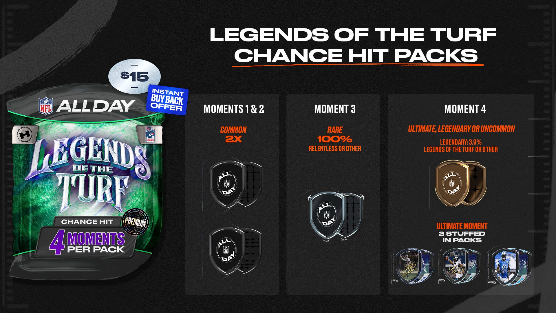 - Chances at rare, Legendary & Ultimate Moments from the ALL DAY historical catalog