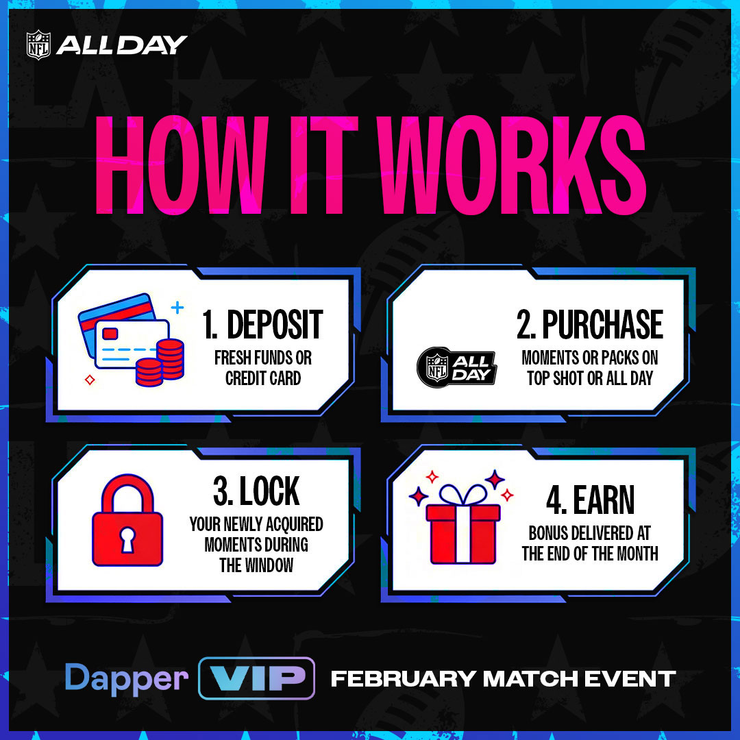 Important: Purchases must be made with funds added to your Dapper Wallet between Feb 9-23. Pre-existing Dapper Balance from before the promotion does not qualify.